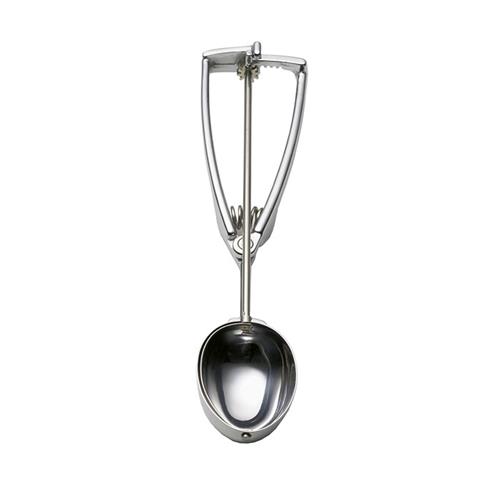 Cuillère à glace de forme ovale en acier inoxydable 18/10 et une poignée en laiton massif chromé vous permettant de former un quenelle en un mouvement.